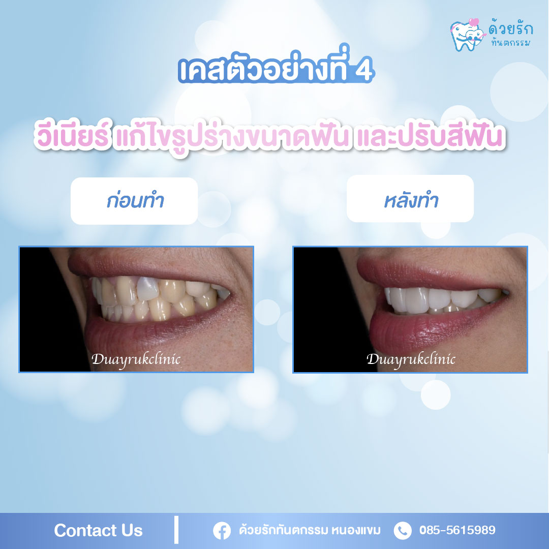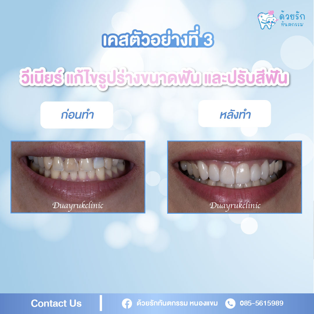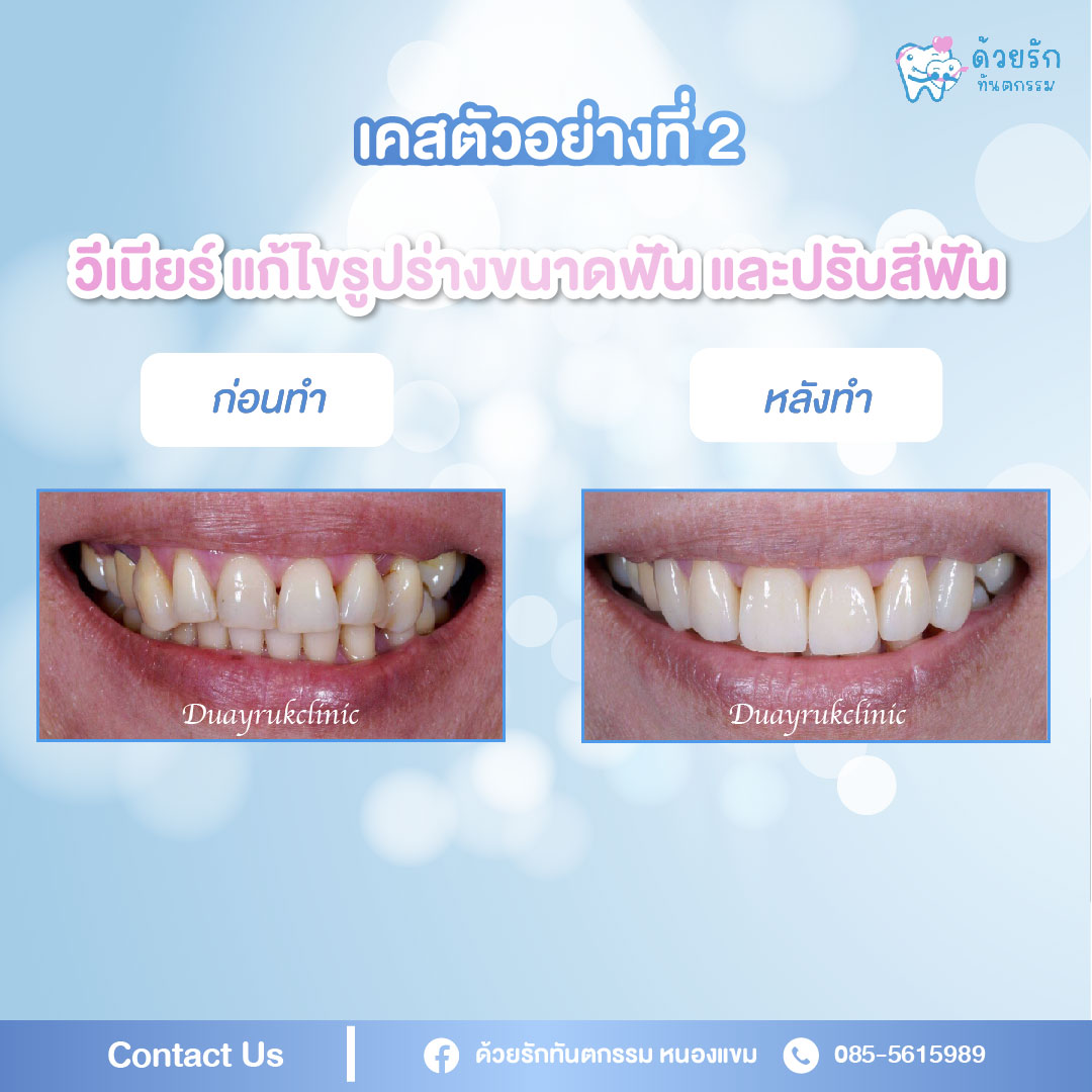 • ฟันขาวได้ยาวนาน เนื่องจากวีเนียร์ติดคราบต่างๆ ได้ยาก เช่น คราบอาหาร-เครื่องดื่ม