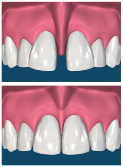 - Hight labial frenum attachment: พังผืดระหว่างฟันหน้าบนเกาะต่ำข้ามระหว่างฟันหน้าบน ส่งผลให้เกิดฟันคู่หน้าห่าง (Median diastema) โดยมักจะทำร่วมกับการจัดฟันเพื่อกำจัดสาเหตุของฟันห่าง